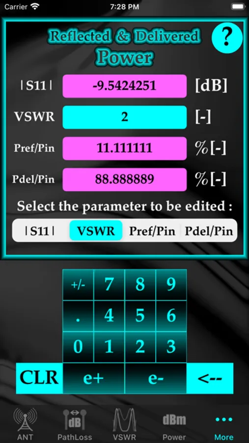 5) Reflected & Delivered Power : you can compute the ratio of the delivered power to input power or solve other parameters (ratio of reflected power to input power, modulus of reflection coefficient, voltage standing wave ratio).