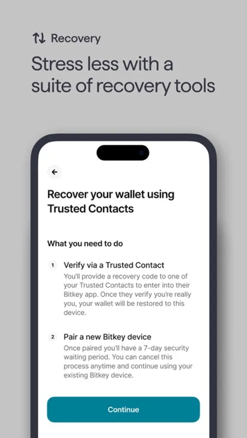 Bitkey recovery tools help you recover your bitcoin if you lose your phone, hardware, or both, without needing a seed phrase.
