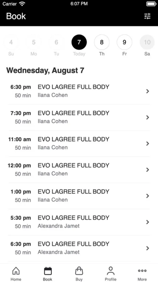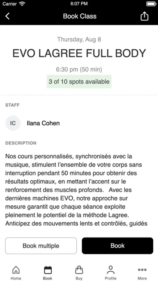 Depuis cette application mobile, vous pouvez consulter les horaires des cours, vous inscrire aux cours, voir les promotions en cours, ainsi que l'emplacement du studio et les informations de contact.