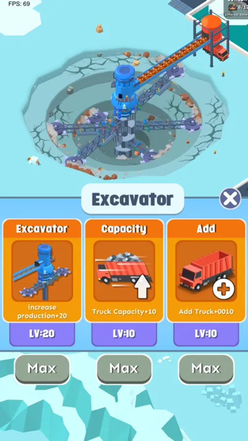 Introducing "Spiral Excavator Empire" - the ultimate casual idle game where you can build your mining empire from the ground up! Take control of powerful spiral excavators and giant mining machines to unearth valuable ore resources. Dig deep into the earth and extract precious minerals that can be transported to trucks for further processing. Upgrade your excavators to increase their productivity and unlock new levels of efficiency. Each processing facility specializes in a specific type of ore, with up to 10 production lines to manage. Upgrade each facility individually to maximize output. Once processed, the materials are transported by trucks to the harbor and then conveyed onto cargo ships through a network of conveyor belts. Expand your mining operations, optimize your production, and dominate the mining industry. Are you ready to spiral into success?