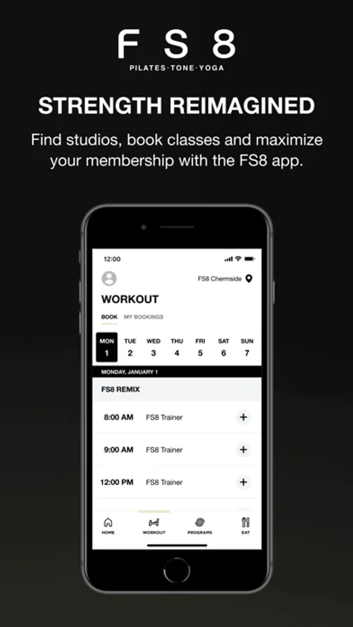 BOOK CLASSES - Book classes, join waitlists and check class schedules. With our exclusive FS8 booking experience see all of our workout brands you know and love as well as exactly whether its a cardio, strength, recovery or hybrid day. You can also book an in-studio body scan, helping you to understand your body composition and personal fitness journey.