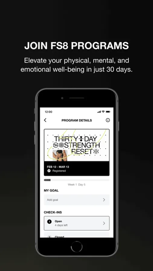 • Join FS8 Programs, set goals, complete check-ins and share your results.