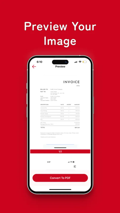 Convert to PDF: Tap the convert button to quickly turn your images into a high-quality PDF document.
