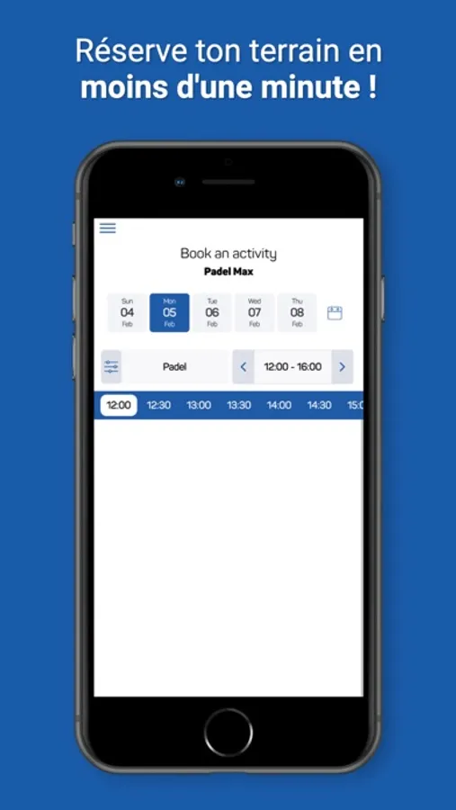 Fini la corvée de réservation ! Avec l'application tu n'as plus qu'à accéder aux créneaux disponibles et à en choisir un. Le club recevra alors automatiquement ta réservation.