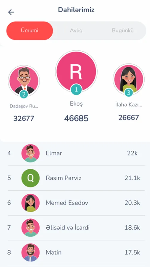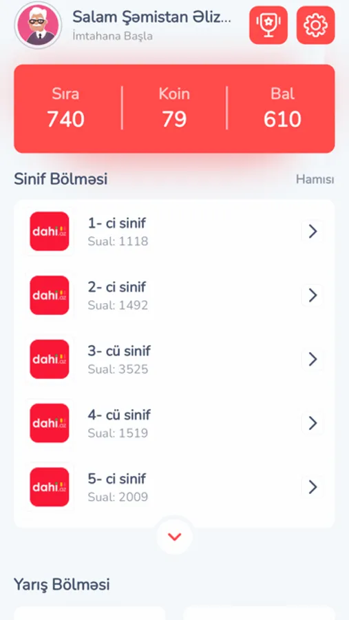 Mobil tətbiqimizdə şagirdlər üçün siniflər və fənnlər üzrə minlərlə suallar mövcuddur. Eyni zamanda həm şagirdlər həm də digər yaş qrupları üçün “Yol Hərəkət Qaydaları”, “Ətraf Mühitin Qorunması”, “Dil Öyrənmə” kateqoriyaları üzrə minlərlə suallar mövcuddur. Müəllimlər və Dövlət Qulluğuna hazırlaşan şəxslər üçün də uyğun kateqoriyalar üzrə suallar mövcuddur.
