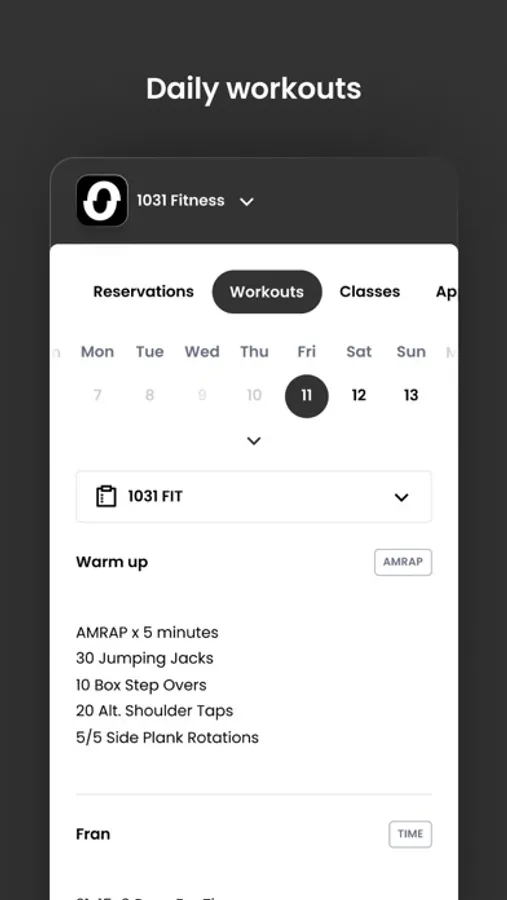 For members of 1031 Fitness to reserve their place in a class, sign up for gym events, and general account management like updating headshots and credit card on file.
