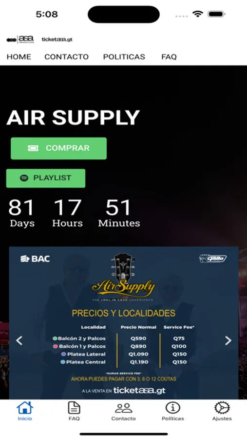 Descarga Ticketasa ahora y prepárate para experimentar lo mejor de la escena de entretenimiento de Guatemala. No te pierdas tus eventos favoritos: ¡compra tus entradas hoy!