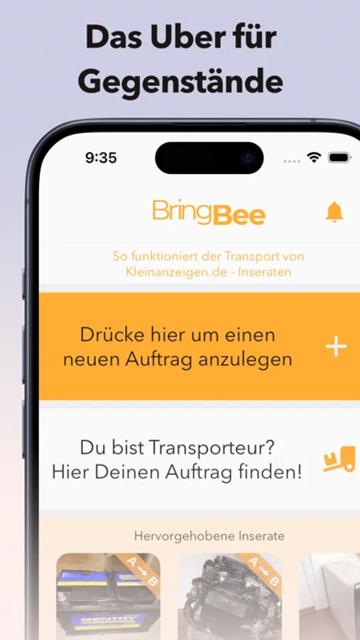 BringBee is the platform that arranges private transports, primarily of used items. Our innovative platform allows customers to find the suitable transporter of their choice for items purchased from classified ads or other platforms.
