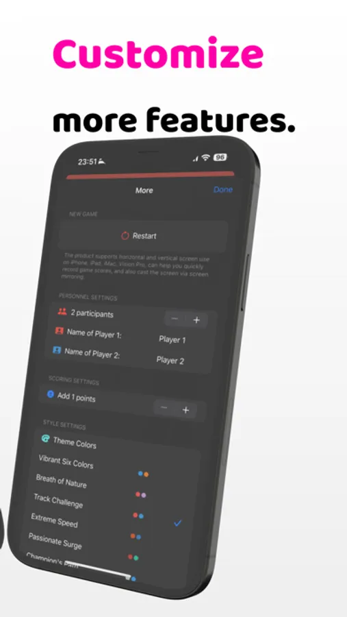Theme Selection: Switch between various visual styles with the app’s support for multiple themes, creating a unique visual experience for each game or event.