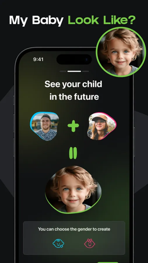Our app uses a recent technology of Artificial Intelligence to analyze facial features and make a prediction about your future baby's face.