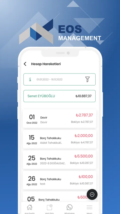 • Cari Hesap Hareketleri; bölümünüze yapılan tahakkukları , güncel borç durumunu ve geçmiş dönemde gerçekleşen ödemelerinizi görüntüleme,