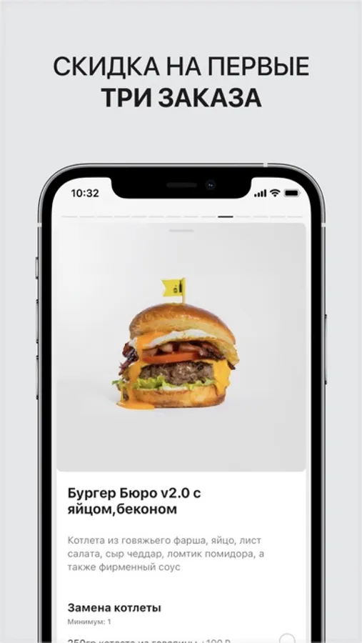 Удобное приложения для доставки из бургерной «Бюро». Легендарные бургеры по авторским рецептам since 2013!