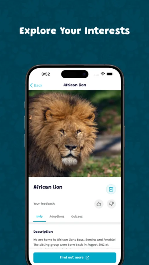 Full of useful features and facts, our app will give you lots of information about your favourite animals and plants and where to find them, our talk times and events, where to get a bite to eat and much more. Everything you need to make the most out of your day with us.