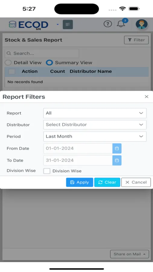 ECOD MR Panel: a new report-sharing solution through which MRs can easily get stock and sales reports from distributors on time on a single panel. It means that you are no longer required to send reminders or visit distributors physically for reports. With the MR Panel, you can say goodbye to the hassles of traditional reporting methods and embrace a seamless process that saves you time and effort.