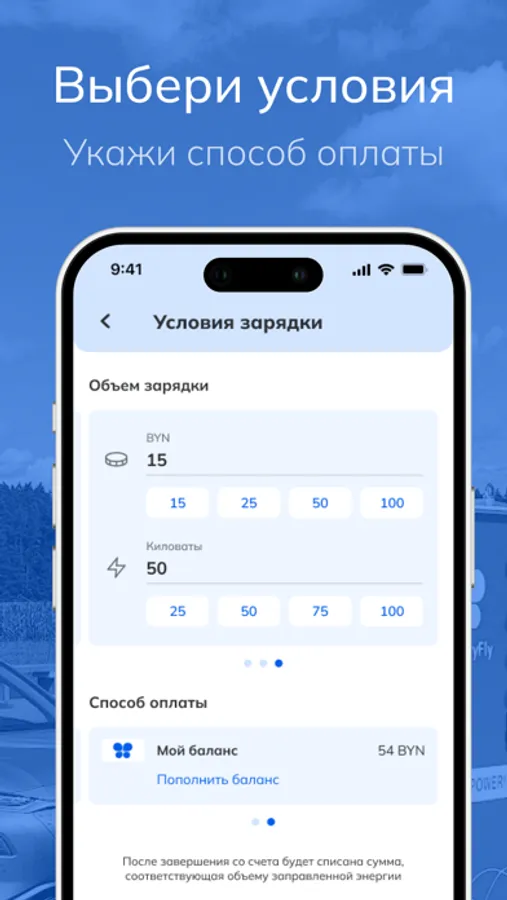 - Заправка до полного бака, 80% или ограничения по кВт*ч