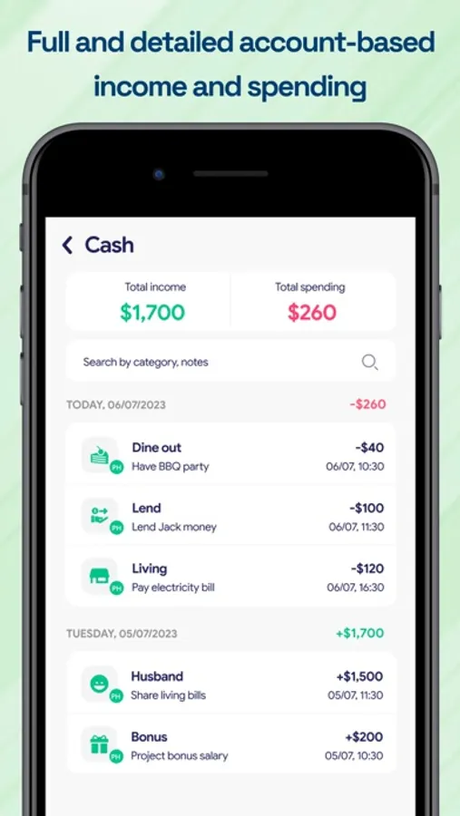 - Wallets - organize your cash, bank accounts or different financial occasions