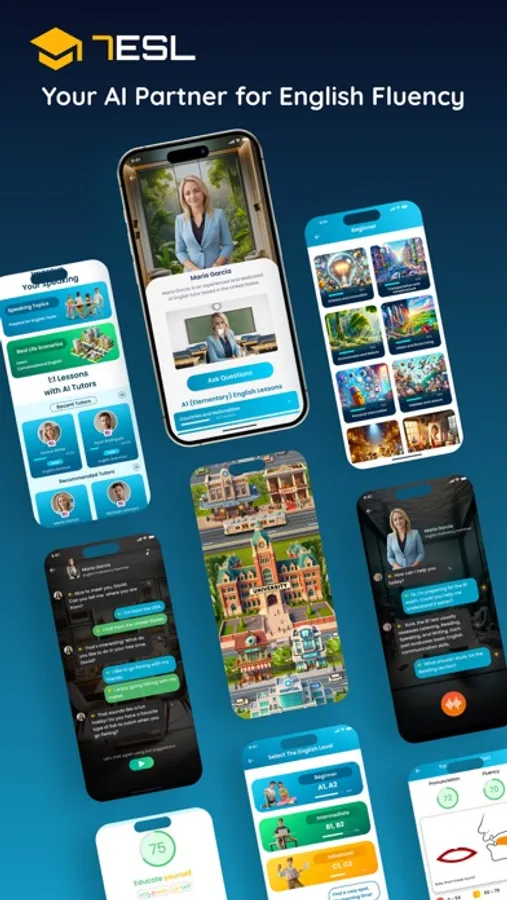 • Interactive Practice in 7ESL City: Visit virtual places and engage with AI characters to practice real-life English conversations.