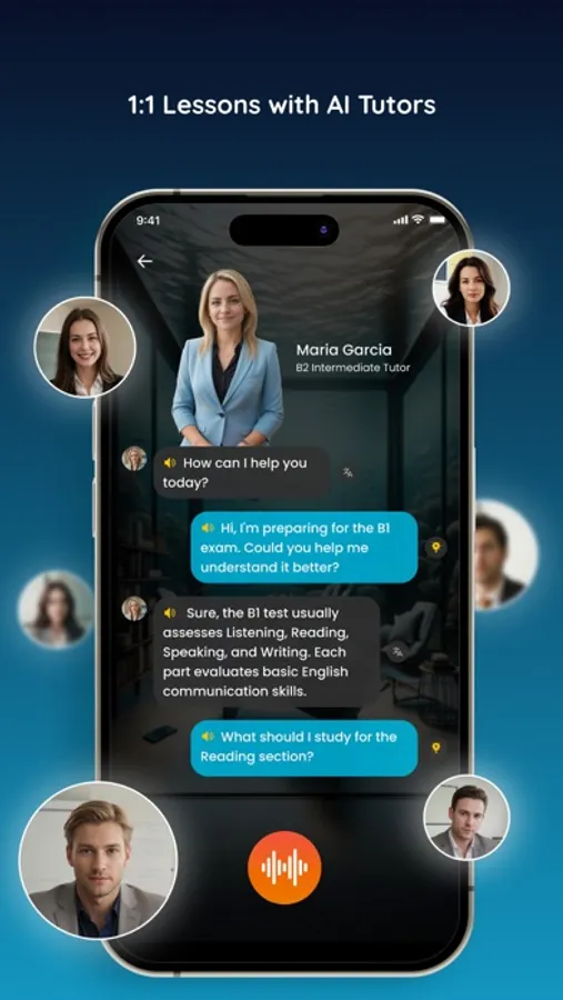 • AI Tutors at Your Service: Access a plethora of lessons for test prep or casual chats, all powered by AI English experts.