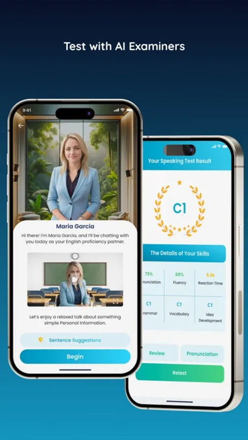 • In-Depth Speaking Reports: Get comprehensive analyses of your pronunciation, fluency, and more, along with an English level certificate.
