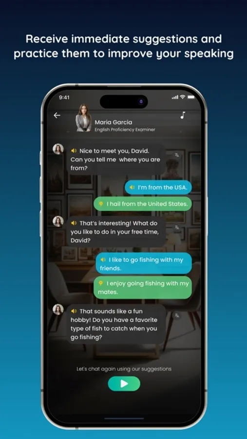 • Review, Replay, and Perfect: Replay conversations with suggestions for enhancement, focusing on native-like fluency.