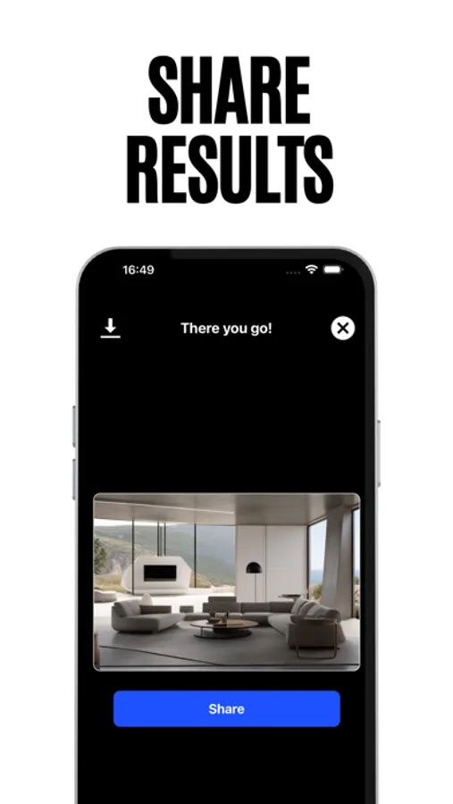 Save and Share: Capture your favorite room renovations and save them for future reference. Share your transformed spaces with friends, family, or interior designers for valuable feedback and inspiration. Collaborate seamlessly and bring your design ideas to life.