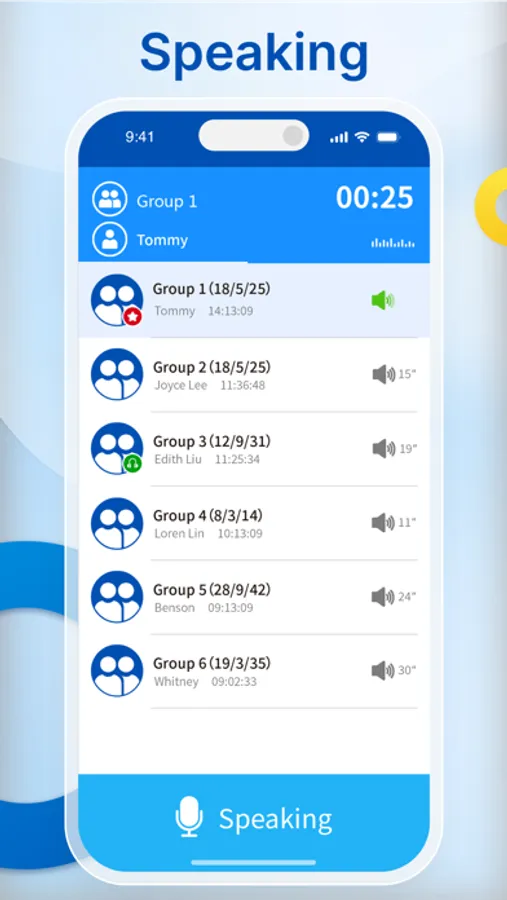 Press and hold the button ⟶ talk and others will listen to you in real time