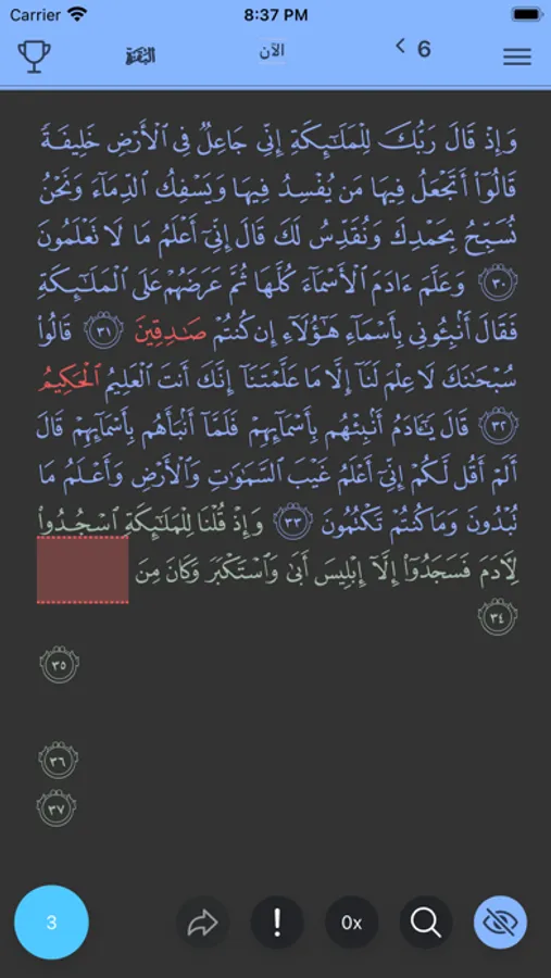 - تيسير مراجعة القرآن عبر اخفاء/اظهار الكلمات بحسب ما تقرأه (عبر تقنية يسيرة وذكية باللمس).