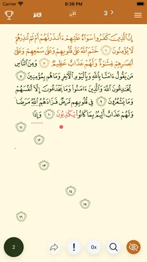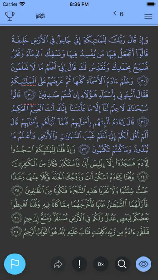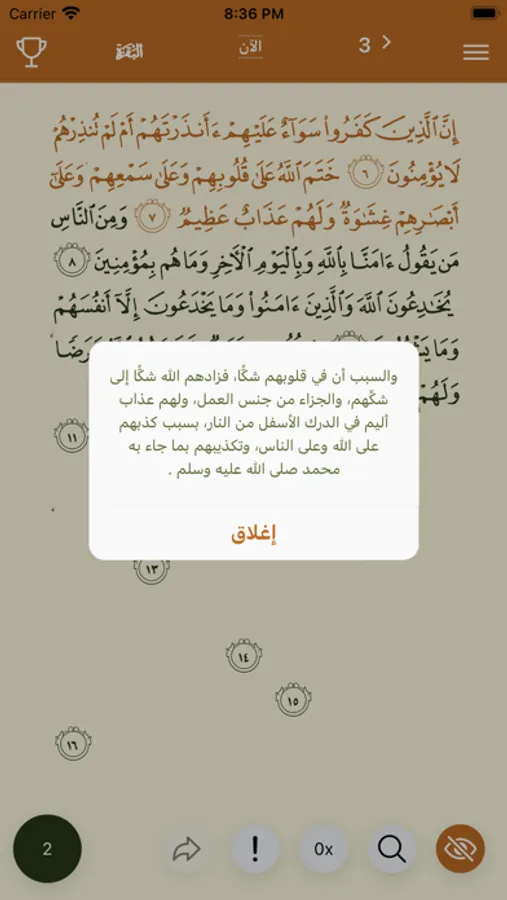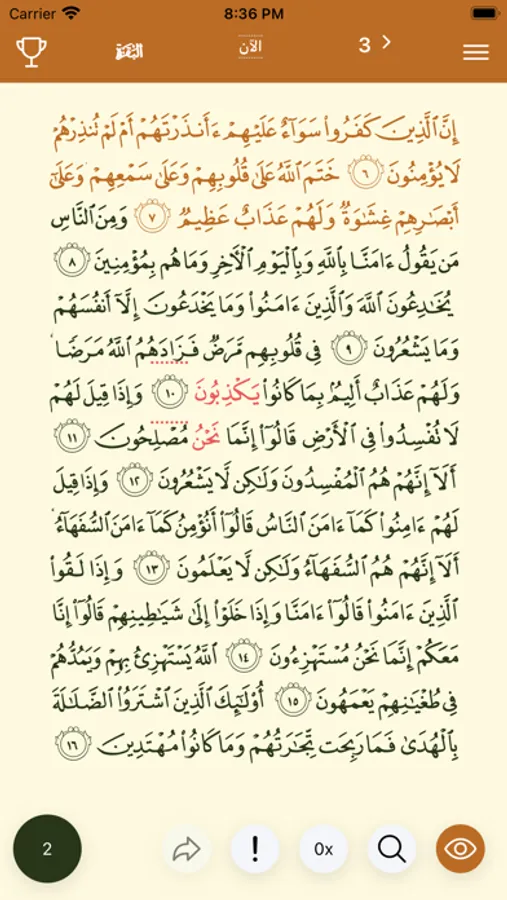 - العودة إلى الصفحات السابقة عند الانتقال إلى سورة أخرى أو مقطع آخر.