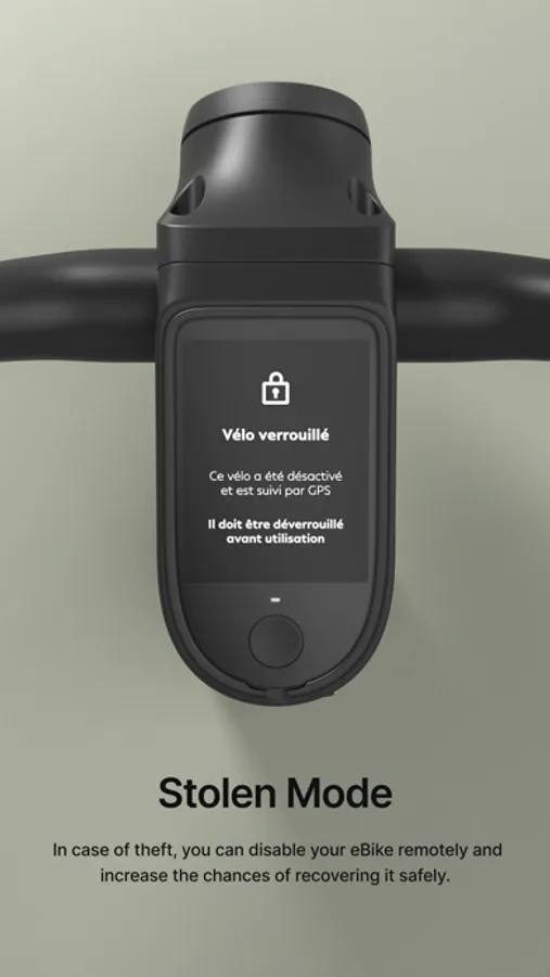 Don't be helpless in the face of theft. The app allows you to remotely deactivate your bike's electric assistance. In the event of theft, the stolen mode makes your bike less attractive to thieves and increases the chances of recovering it safely.
