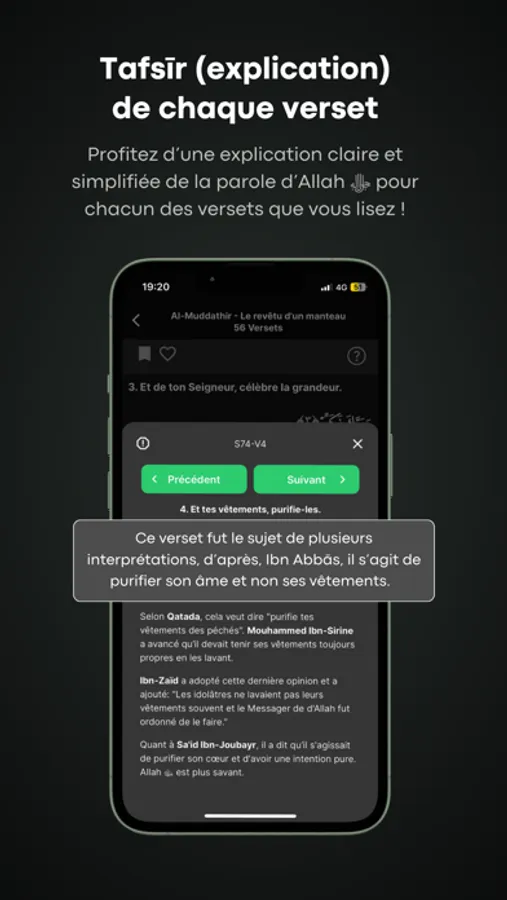- Tafsīr (exégèse) : profitez du Coran traduit en français avec l'explication de chaque verset sur la base du commentaire d'Ibn Kathīr
