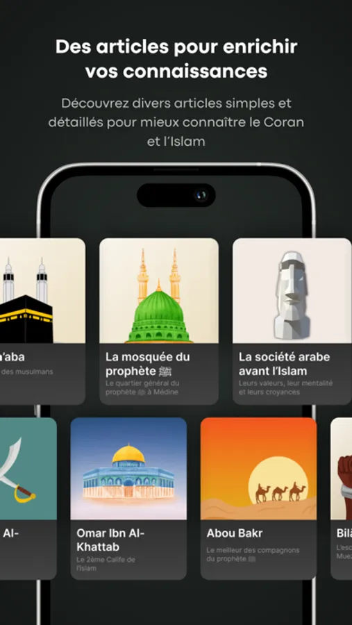 - Articles : Enrichissez vos connaissances sur le Coran et l'Islam grâce à une série d'articles simple, détaillés et régulièrement renouvelée (Compagnons du prophète (Que la paix soit sur lui), monument de l'Islam et bien d'autres)