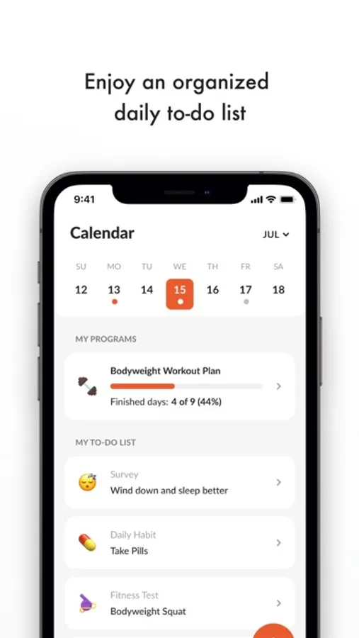 From there, slide over one tab to the fitness calendar that will act as your daily workout planner. When your coach assigns you a fitness plan, asks you to weigh yourself, track your daily nutrition macros, or requests a progress photo - you’ll find that to-do list right here. Clicking on the workout for the day will take you right to the first exercise of your fitness program.