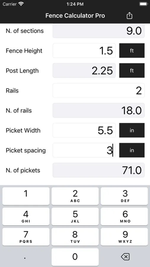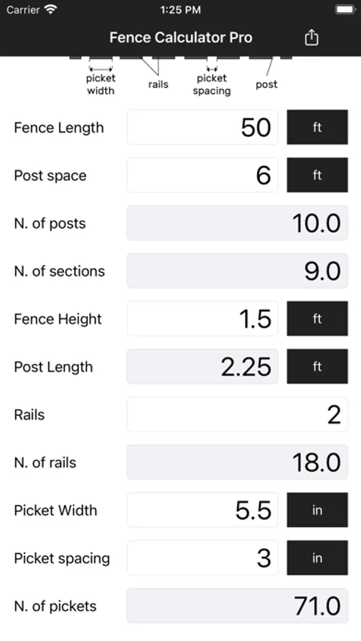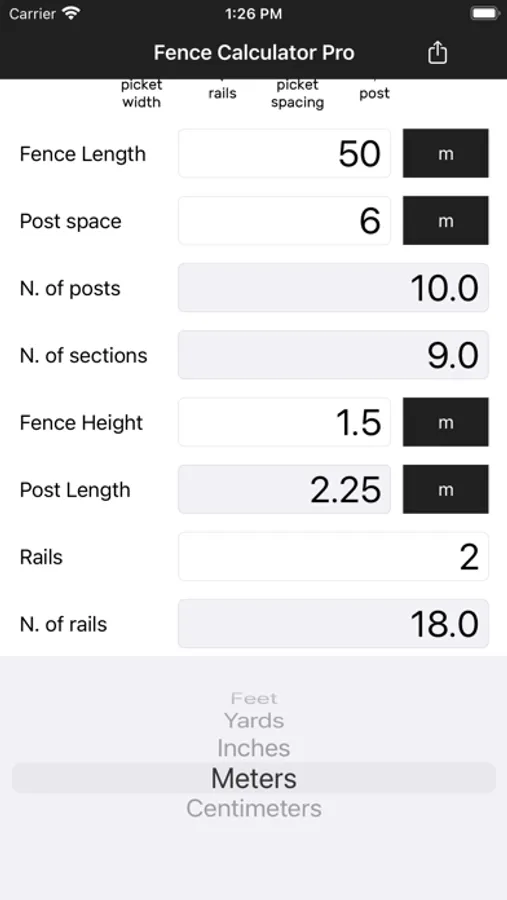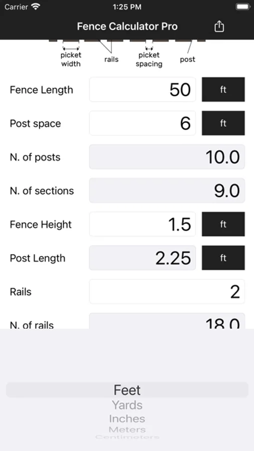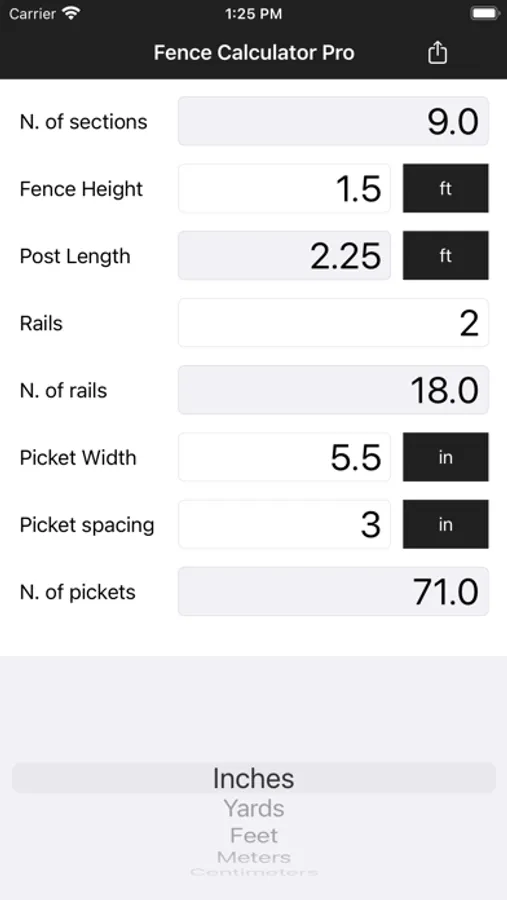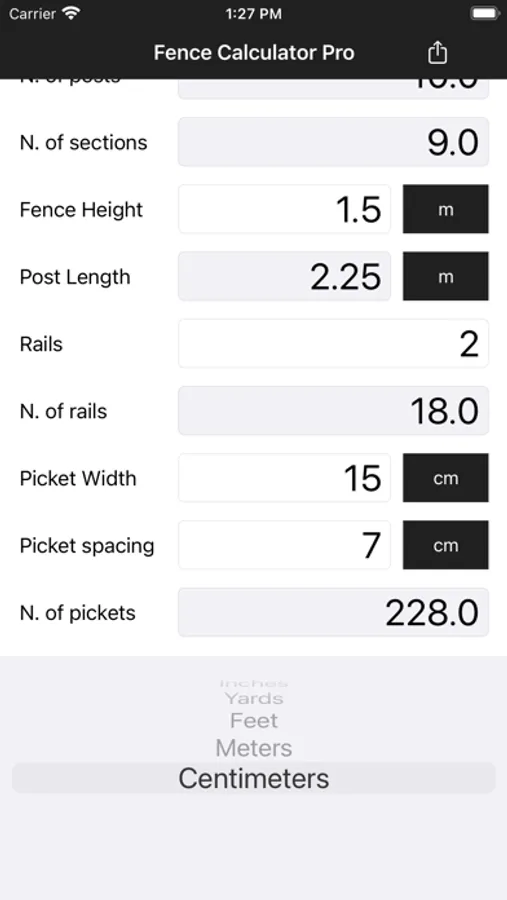 Fence Calculator Pro can also quickly determine fence based on Fence length and a Post space expressed in: