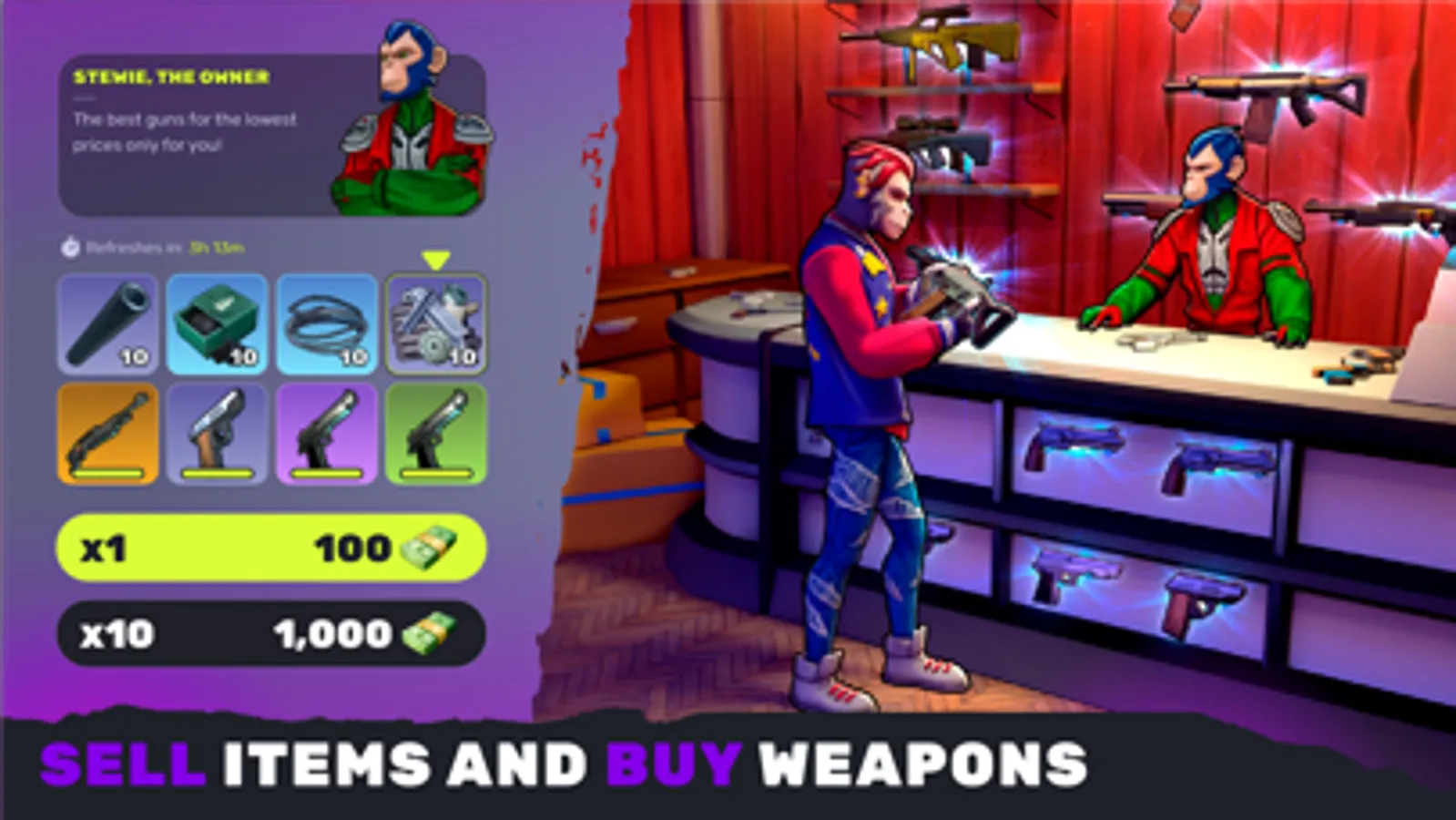 • Want to make your gang the coolest in Apepire? Gather some friends and show everyone your weapon collection in PVP. Remember to bring grenades and guns!