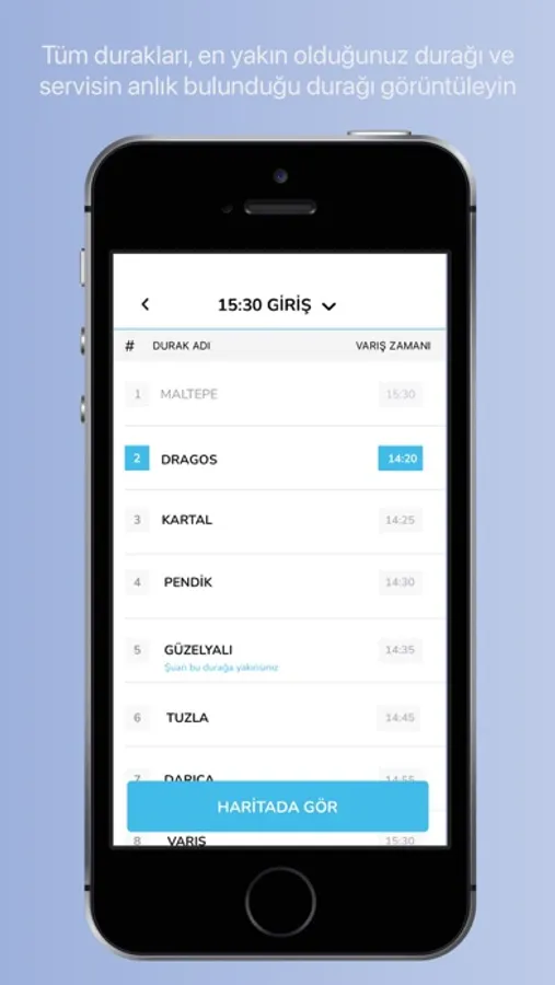 Servis ile ilgili öğrenmek istediğiniz her şey mobil uygulamamızda.