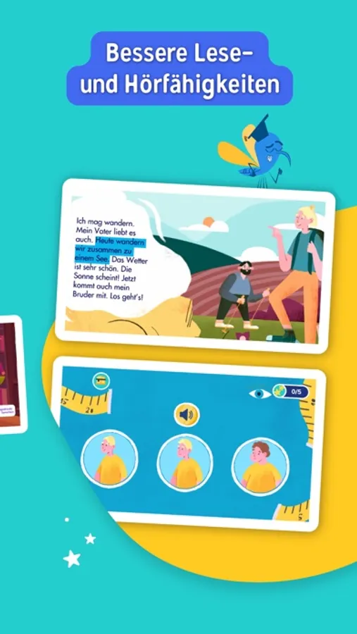 - Ihr Eltern seid: eure Kinder können ohne Schuldgefühle lesen und mit der App spielen, während sie Deutsch lernen