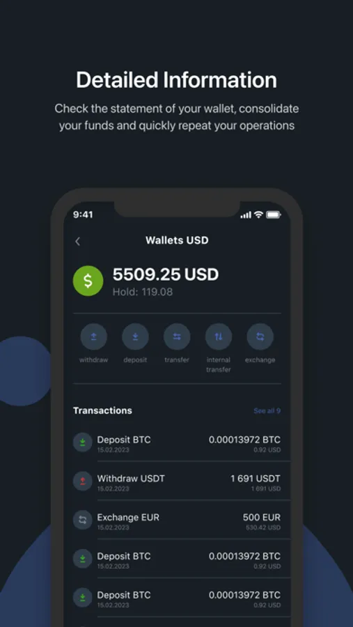 - Multi-currency wallet with real-time balance tracking