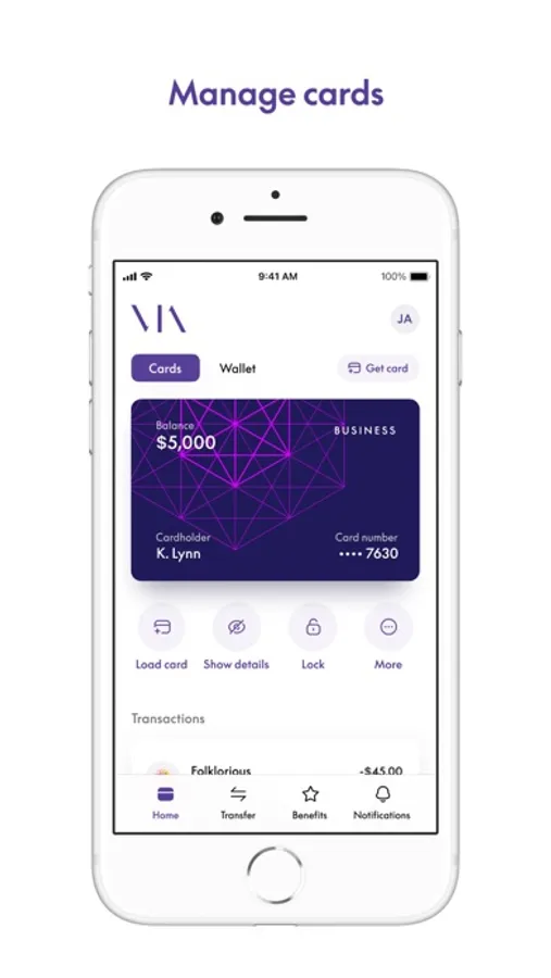 Cards – Get new physical or virtual cards, add cards to a digital wallet, load cards with funds from the wallet, view card details, freeze cards, see transactions, and more.