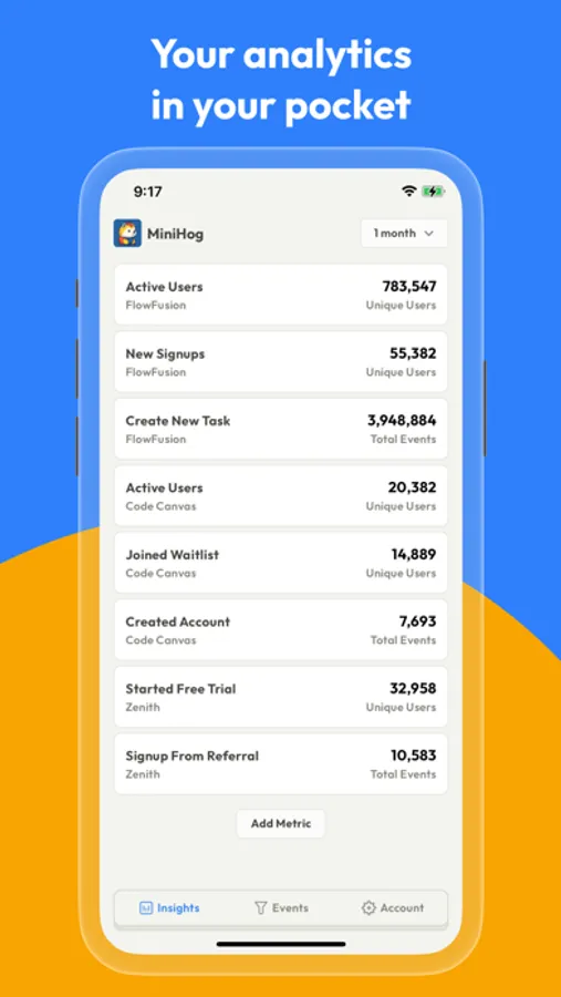Introducing MINIHOG! The easiest way to track your product's analytics while on the go. MiniHog is the #1 third party mobile client for PostHog Analytics, built with complete data privacy, and offers a clean and performant UX to help you make the most of your analytics during your busy schedule. Keeping up with your product metrics is important, even if you are not at your desk. MiniHog was built to make this part of your day a little bit easier.
