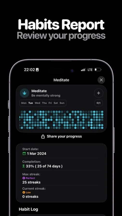 – Apple Watch Integration: Stay connected with your goals directly from your wrist. Mark off habits as you go, keeping your momentum alive no matter where you are.