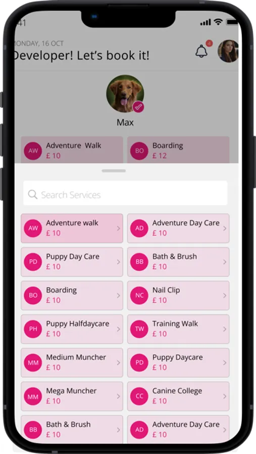 Single-Screen Booking: Enables quick and efficient booking of pet care services on a single screen.
