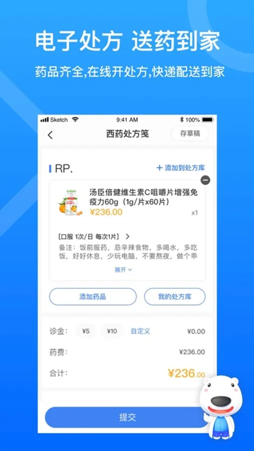 【电子处方】医生线上“云”药房,药品齐全,配送到家,诊疗开方一键畅通。