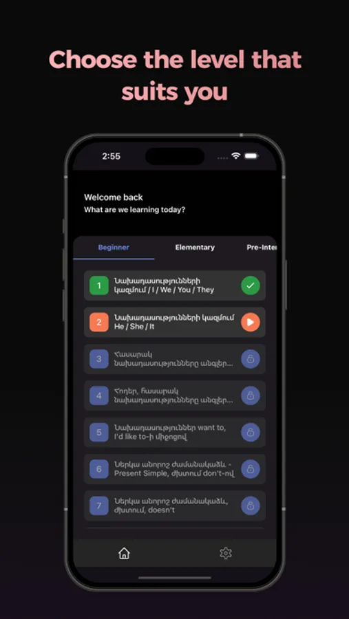 You can choose any level and start practicing. Take English lessons for free and feel real progress.