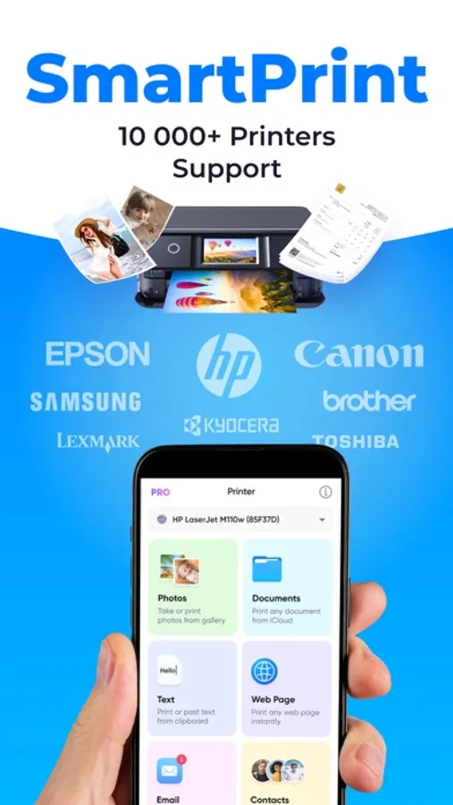 Smart Printer: Mobile printer, scan help you to print photos and share them with family and friends. Print documents, PDF files, invoices, receipts, boarding passes, and more at home, at work, or while on the go!