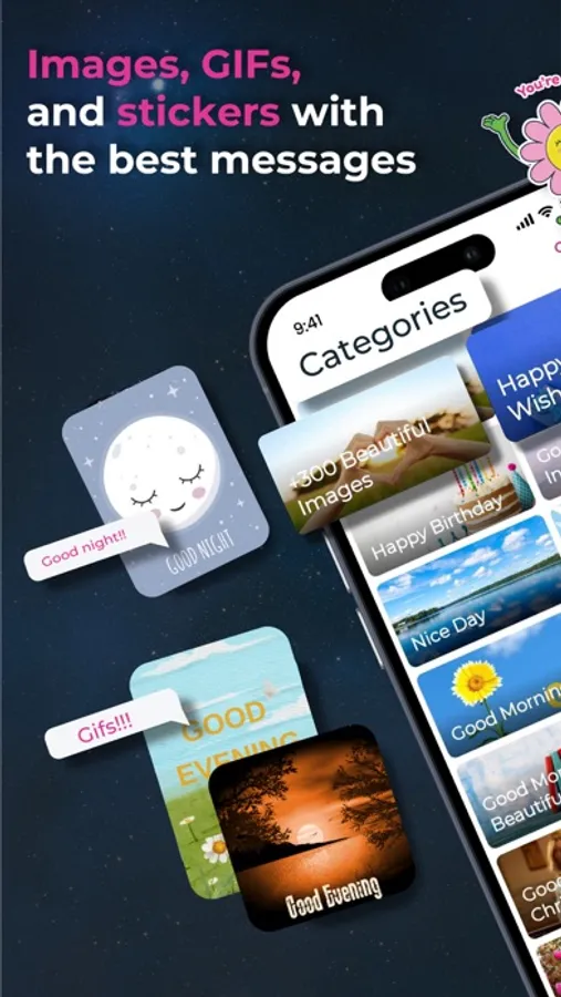► Daily message collections for every moment: bright “good morning” sets, gentle afternoon wishes, and calm “good night” selections.