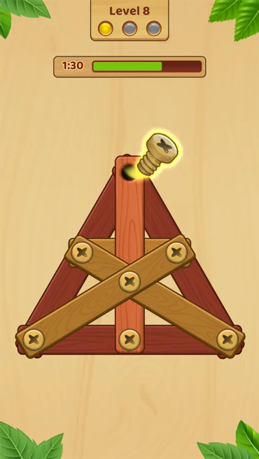 - Each level will have 2-3 rounds from easy to difficult to make solving nuts and bolts - screw puzzles more interesting.