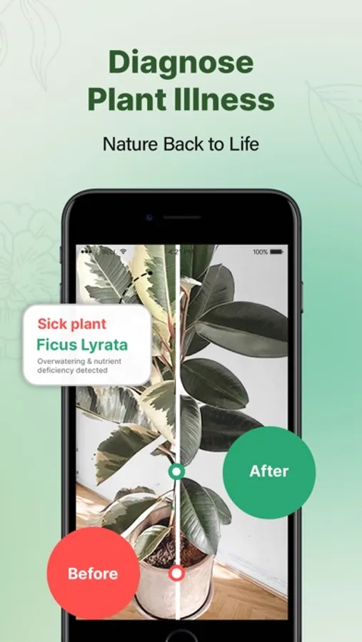 Identify any plant, flower, herb, shrub, or tree by photo and get essential care tips. Set reminders to ensure your plants thrive. Capture a photo to diagnose plant diseases and receive quick remedies. Chat with specialists for professional guidance. Keep your plants flourishing with PlantON!