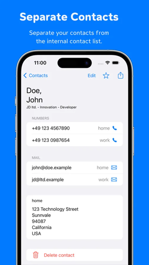 Isolate your contacts from the standard contact list and protect them from access by third-party apps.