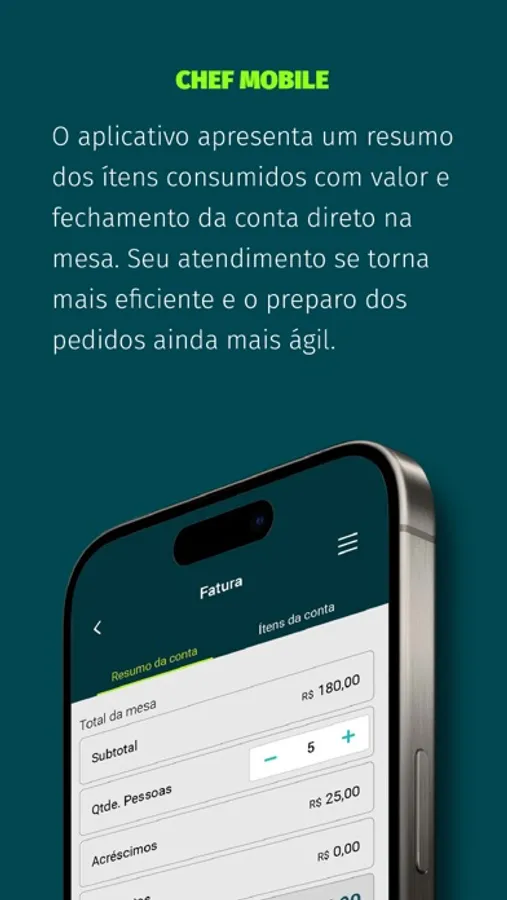 Transforme a forma como você gerencia pedidos e melhore a eficiência do seu serviço de garçom. Baixe agora o Chef Mobile e experimente todas as vantagens de ter o controle total sobre o atendimento de pedidos no seu restaurante. Estamos aqui para oferecer suporte contínuo e garantir a sua satisfação. Entre em contato conosco se tiver alguma dúvida ou sugestão.