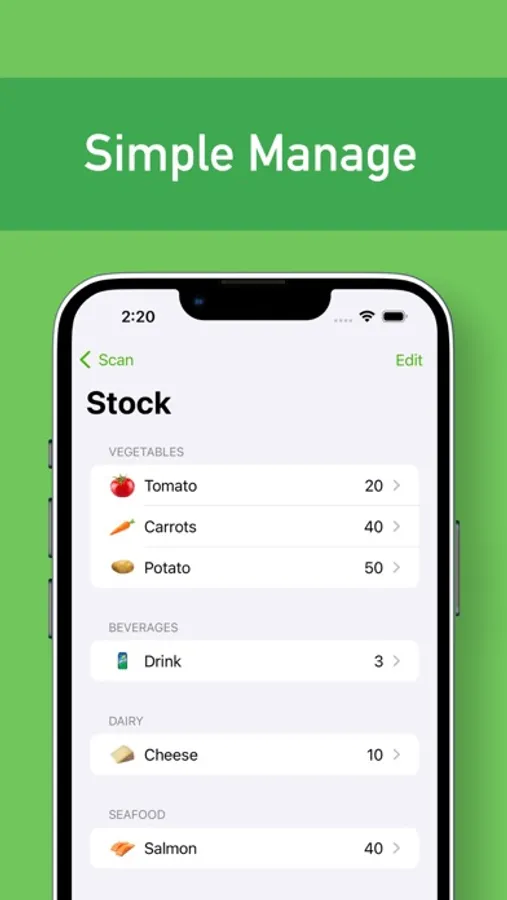• Scan & Track: Easily scan barcodes or manually add items to track your inventory in real-time.